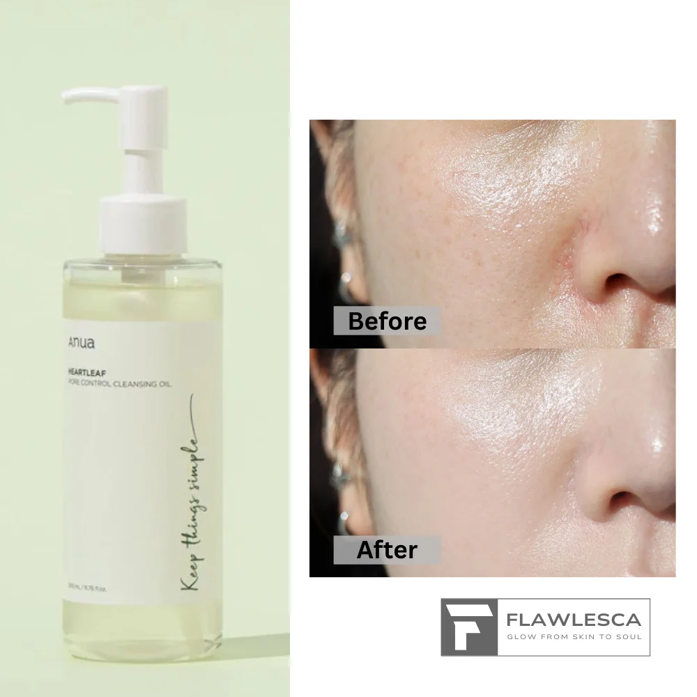 Anua Heartleaf Pore Control Cleansing Oil একটি মাইল্ড ক্লেনজিং অয়েল যা হার্টলিফ এক্সট্রাক্টের সাহায্যে ত্বকের তেল ও ময়লা সহজেই দূর করে, পোরকে পরিষ্কার এবং সংকুচিত করে। এটি ত্বককে সুষম ও হাইড্রেটেড রাখে, বেসিক মেকআপসহ স্ট্রং মেকআপও পরিষ্কার করতে সক্ষম।